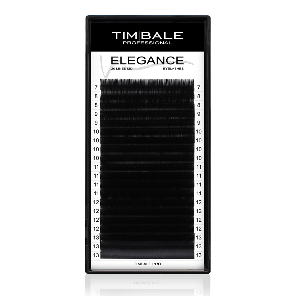 Ресницы TimBale ELEGANCE произведены из современного высококлассного волокна. Имеют более натуральный черный цвет без прочих сторонних оттенков (в сравнении с сериями ресниц Timbale Black Glossy и Black Swan, которые обладают более насыщенным угольно-черным оттенком волокна). Благодаря оптимальному заострению 5-6мм Elegance идеально подходят для создания любых, как натуральных, так и супер трендовых эффектов. Подходят как для классического, так и для объёмного наращивания.