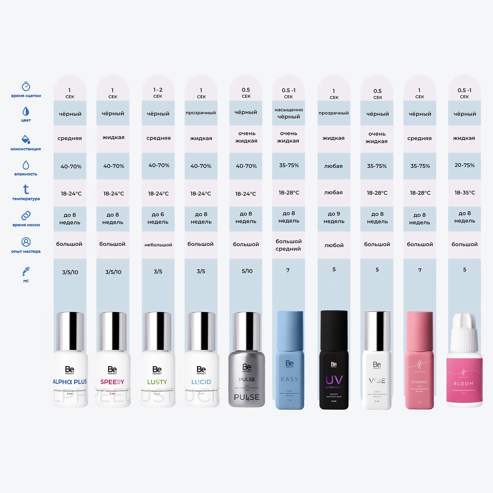 Клей Be Perfect для наращивания ресниц Pulse применяется для приклеивания искусственной ресницы к натуральной профессиональными лэшмейкерами. Жидкая консистенция позволяет сделать сцепку моментальной, а количество испарений сведено к минимуму, что снижает риск проявления аллергической реакции. Мгновенная фиксация позволяет эффективно работать в технике объемного наращивания.